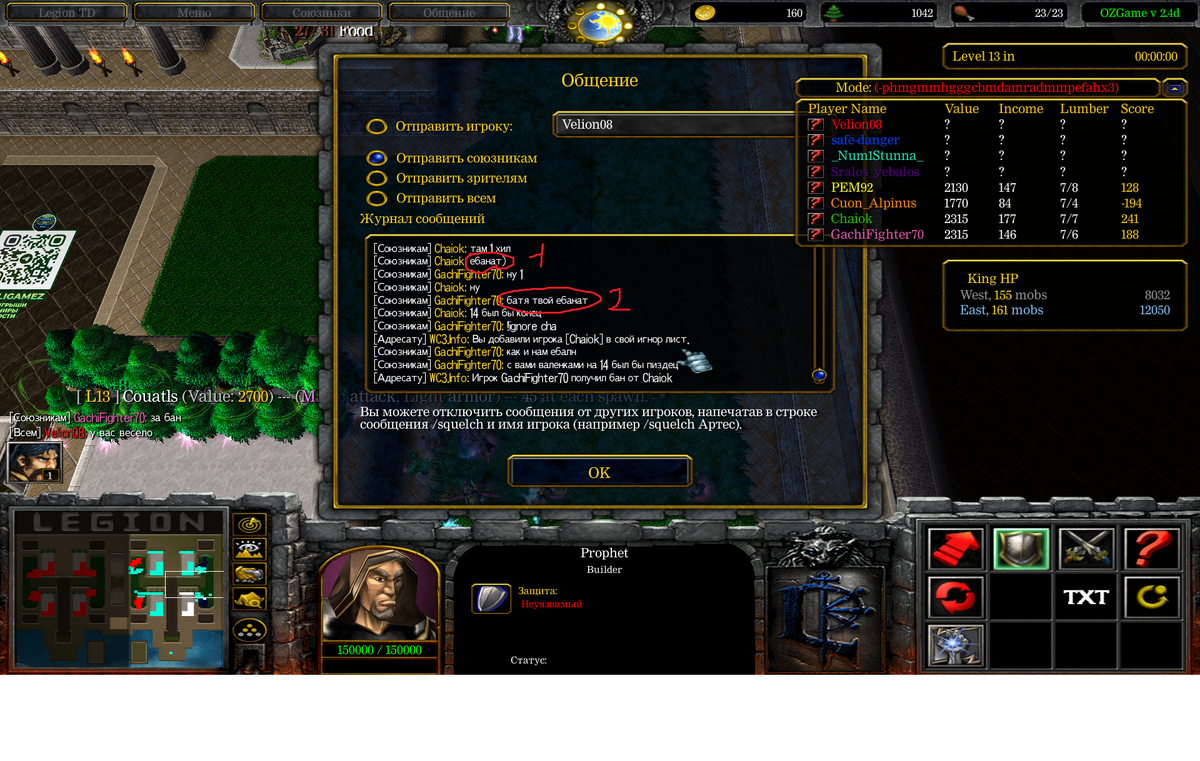 начнем с того что ты сливать один лес без команды , в то время как мы втроем уже договорились не кидать 7 и апнули кинга и так же с 12 волной , но ты решил соло кидать , естественно пошел срач между тобой и игроком pem92 где я тоже подключился ибо так делать не стоит , ты начал говорить что мы терпилы на что тебе ответили "еб*нат" но тебе было мало ты решил переключится на родных .