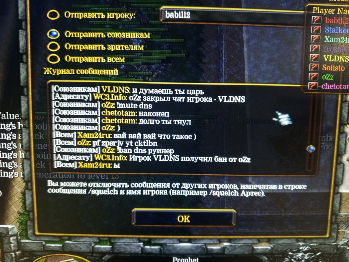 Мои колы не слушали можно прочитать чат и посмотреть игру , никаких оскорблений и тем более руина с моей стороны не было