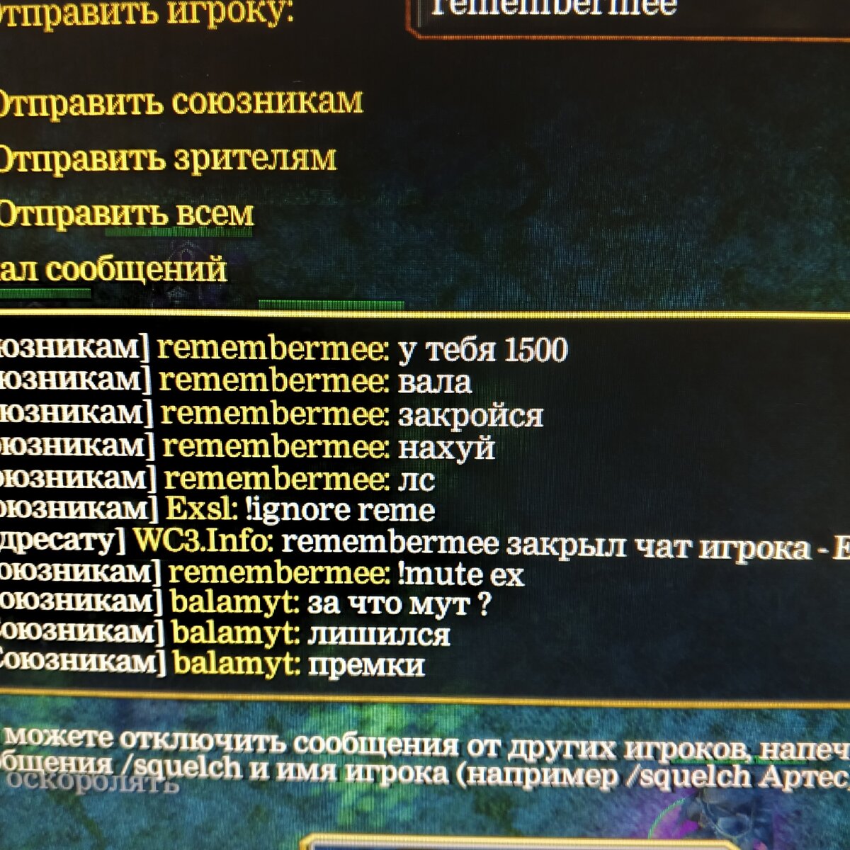 Жалоба на игрока remembermee с сервера WC3.Info