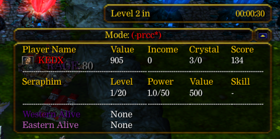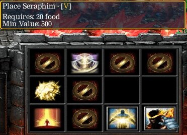 [Обновленная с картинками] HellHalt TD Seraphim Guide (Гайд по Серафиму) Начнем с того, как подготовиться к постройке серафима: Открыв таблицу в правом верхнем углу, вы можете увидеть строку в которой отображается вся статистика по вашему серафиму. Изначально серафим имеет 0 уровень и Power 0/50. Для того чтобы поставить серафима, вам необходимо апнуть Value серафима до значения 500 и сделать 20 свободной еды (улучшите предварительно 2-3 раза ферму, чтобы хватило еды и для серафима, и для постройки юнитов к новому раунду). Ключевым моментом в постройке серафима, является Power. Вам необходимо сделать Power 50/50 перед тем, как качать серафиму уровни за деньги. Для этого, за 2-3 раунда до предполагаемой постройки серафима, постройте самых дешевых т1 юнитов в количестве 35 штук, для того чтобы в следующем раунде влить их в серафима, сделав тем самым Power 50. (О том, как вливать своих юнитов в серафима, читайте дальше!!!). Первые 5 юнитов, влитых в серафима, увеличивают Power на 2 каждый, следующие 5 юнитов на 1.8, следующие 5 на 1.6, следующие 5 на 1.4, следующие 5 на 1.2, оставшиеся 10 юнитов увеличивают Power на 1, итого получаем 35 юнитов. Почему нужно вливать именно т1 юнитов? А потому что бессмысленно строить более дорогих в таком же количестве, т.к Power за всех юнитов увеличивается одинаково. Для чего вообще апать Power? Power нужен для того, чтобы в дальнейшем, если придется апать уровни серафиму за деньги, вы тратили на каждый новый уровень 500 золота, а не больше. В противном случае, если Power будет не апнут, то за первые 500 золота, влитых в серафима вы получите 1 уровень, а чтобы получить уровень 2 , вам придется потратить аж 1500 золота, за 3 и 4 уровень вы заплатите 1000, за 5 уровень 500. Для примера, построим 35 Peewe за 15 золота, затраты составят 525 золота и спустя раунд вольем их в серафима. В итоге получим Power 50/50 и 525 Value серафима, каждый дальнейший уровень будет обходится нам в 500 золота. Для получения 5 уровня серафима нам потребуется 2500. Если апать серафима за золото, то для достижения 5 уровня нам понадобится 4500 монет. Разница весьма значительная. И так мы получили Power 50/50 и создали 20 свободной еды. Теперь необходимо разместить серафима на игровом поле. Находится он чуть выше от ваших виспов, добывающих кристаллы. Для того чтобы разместить серафима на игровом поле, нажмите на него и затем выберите функцию Place Seraphim в правом нижнем углу. Для размещения серафима необходимо больше места, чем для обычных юнитов. Строить серафима можно только на своей половине. Построенный серафим выглядит следующим образом. Куда ставить его каждый выбирает сам. Но так как серафим обладает огромным количеством хп и сильными защитными способностями, его обычно ставят спереди, как "танка". Повышать уровень серафима можно двумя способами: 1) Вливая своих юнитов в серафима. Для этого необходимо во время промежутка между раундами нажать на юнита, которого вы хотели бы влить в серафима, и нажать функцию Soul Transfer , затем повторно нажать Confirm Soul Transfer ( Данное разделение сделано для того, чтобы избежать случайного вливания нужного юнита). Учтите, что вливать юнитов в серафима можно только после того, как они простояли минимум 1 раунд, т.е построить и сразу влить нельзя!! /-/ 2) Второй способ, это повышение уровня серафима за деньги. У своего строителя нажмите функцию Essence Transfer (стоимость 500 золота). ! Информация от KEDX: Обратите внимание на то, что перед тем как 