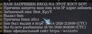 какого хуя , чел играет с мои IP адресом и ещё и выдаете баны в Х3 лтд , когда я даже в игру не заходил. Я хз что это я думал это баг СЕРВАКА , мы как то играли с пранями в х20 а мой аккаунт играл в х3 , мне ещё об этом написали что я сейчас вв игре в х3 . Решайте вопросик -
